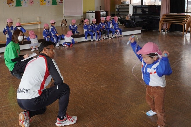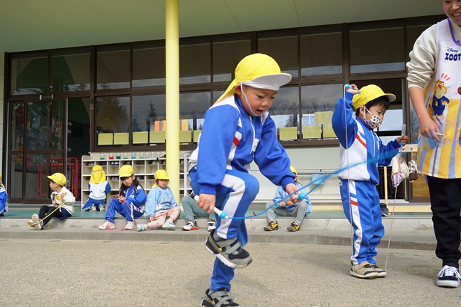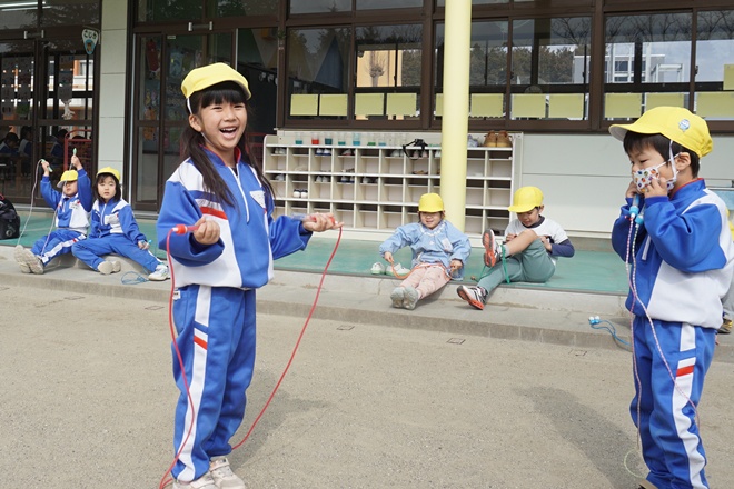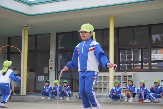 なわとびが得意な子、苦手な子、緊張している子も