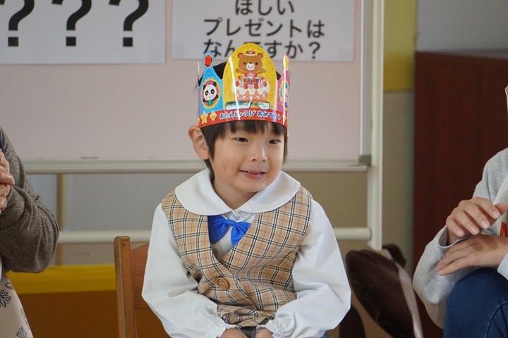 誕生会では、自己紹介やインタビューに自分の言葉でしっかりと発表し、