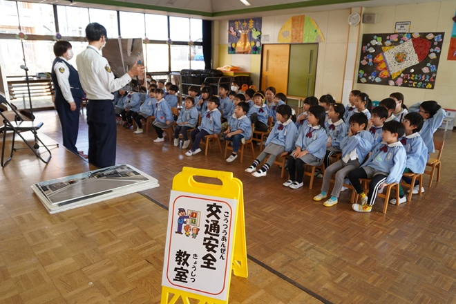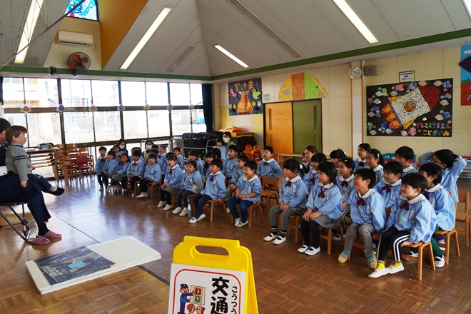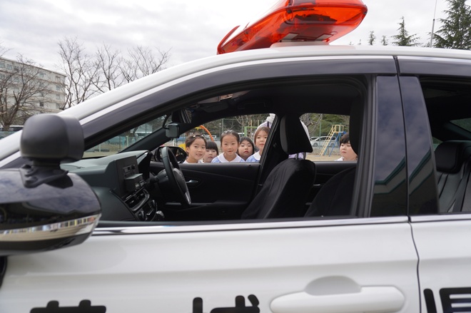 今日は笠間警察署から子どもたちに